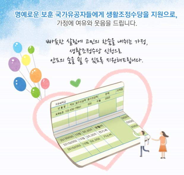 독립유공자나 국가유공자 또는 보훈 보상대상자 및 그 외로 앞순위 유족 中 생활이 힘든분들을 위해 지원합니다.