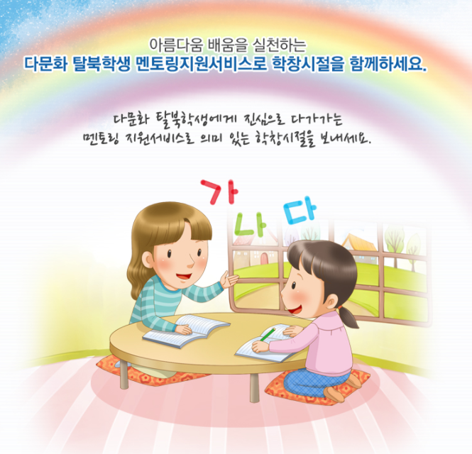 초등학생 및 중학생, 고등학생 中 다문화 가정의 학생과 탈북 학생들을 지원합니다.