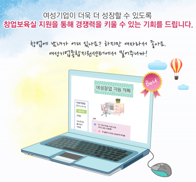 여성이 운영하는 기업 및 예비여성 창업자 분들을 지원합니다.