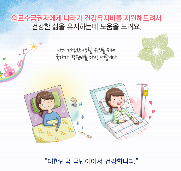 의료급여 수급권자를 위해 의료비(건강생활 유지비)를 지원함에 있어 저소득층에 해당하는 자의 보건 향상과 사회복지 증진에 기여합니다.