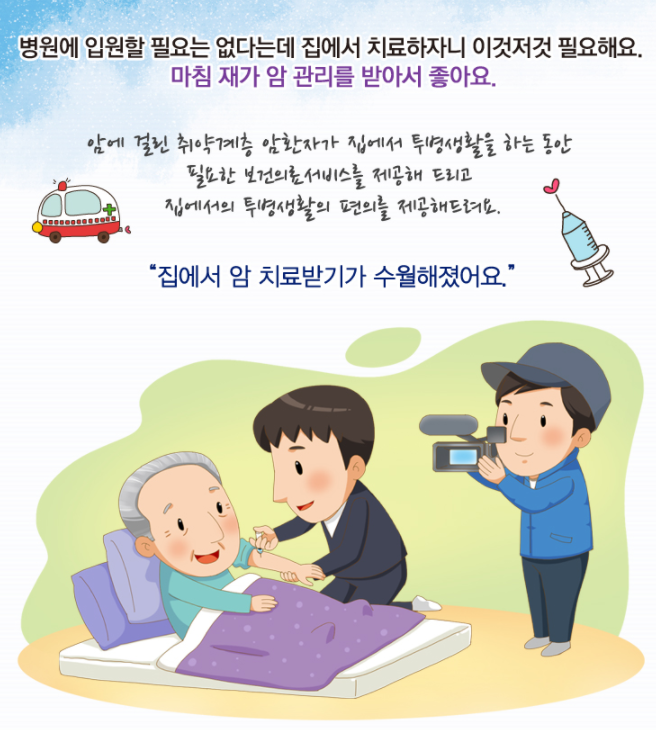 재가 암 환자 관리 서비스를 원하는 모든 암 환자들을 위해 지원합니다.